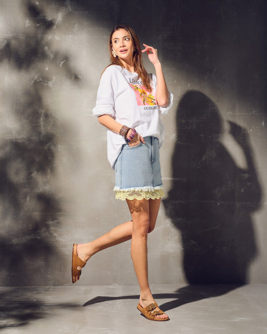 Em promoçãoSAIA DENIM COM RENDA GUSI