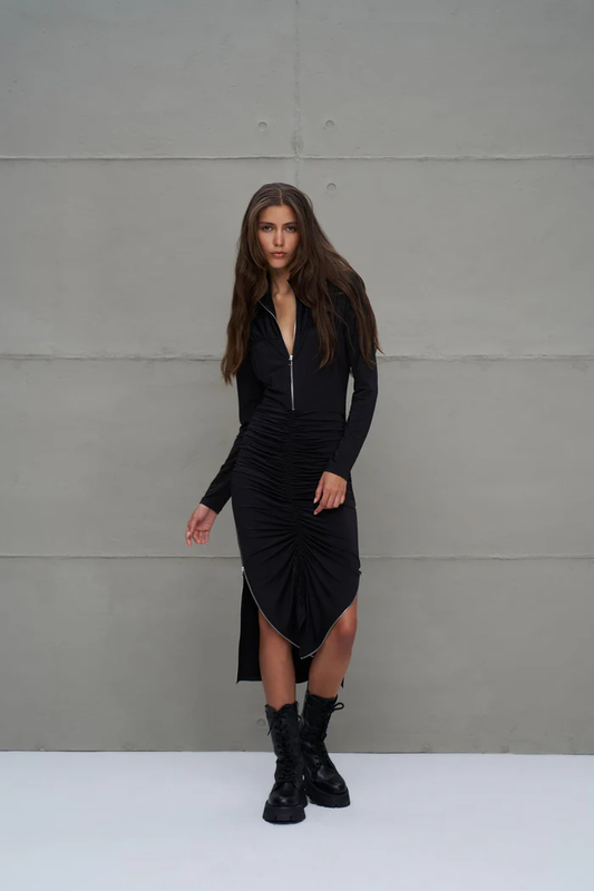 VESTIDO DRAPEADO APLICAÇÃO SWALLOWFornecedor:SWALLOWPreço normal €195.00 EURPreço normalPreço unitário por-