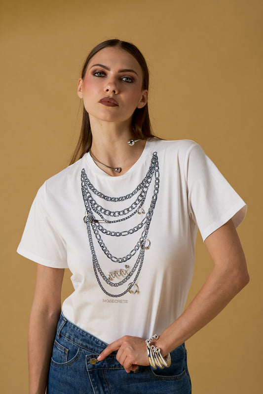 T-SHIRT COM COLAR E PIERCING NO SECRETS