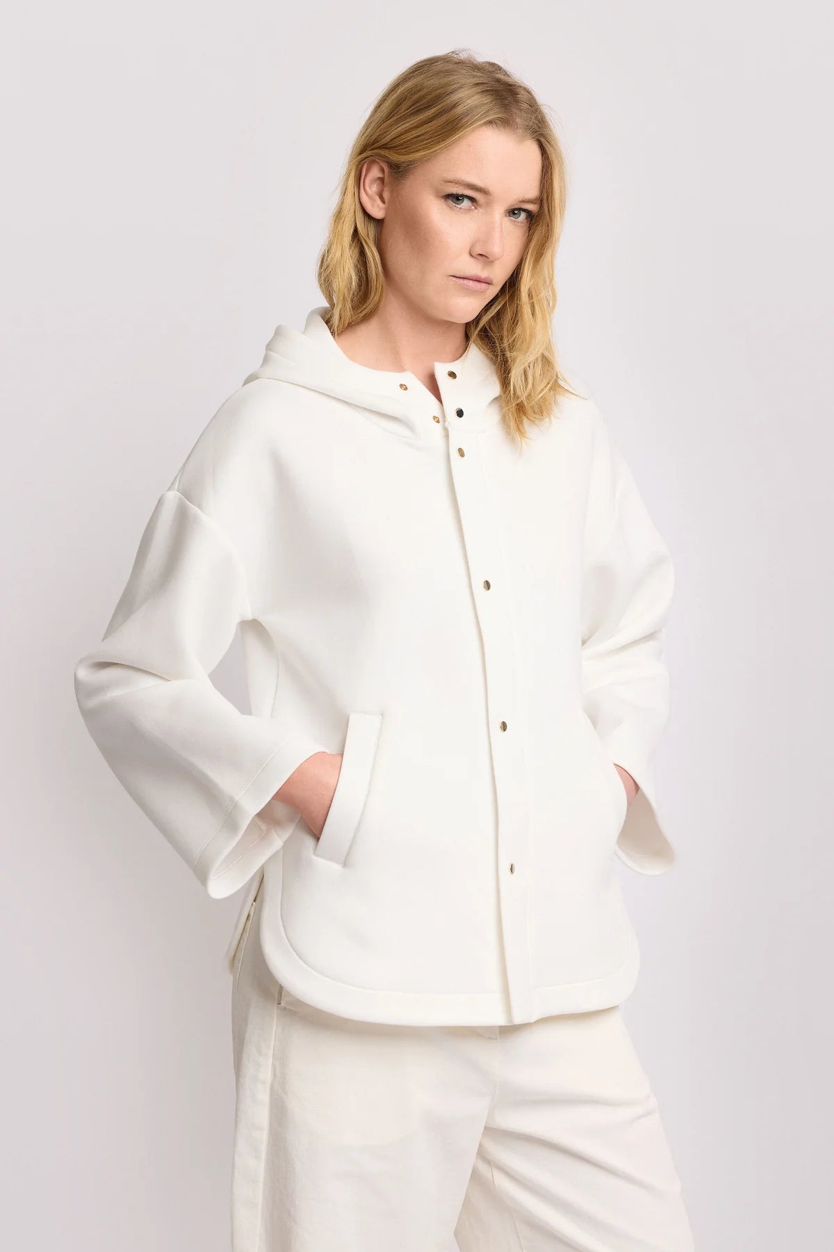 Casaco com capuz e manga comprida. Bolsos frontais funcionais e design versátil que combina conforto com estilo para o seu dia a dia. Fecho frontal mediante molas de pressão e fecho.