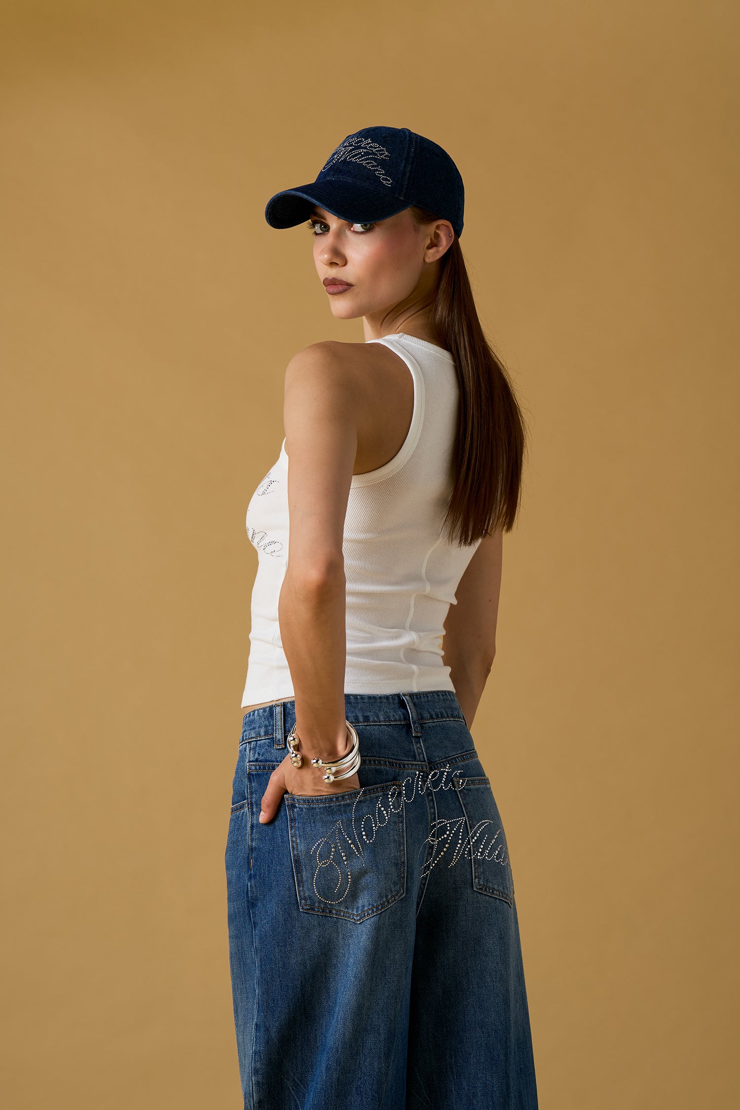 Calças de ganga com cintura cruzada que oferece ajuste seguro e confortável. As pernas largas criam uma silhueta moderna, 5 bolsos funcionais e fecho duplo com botões e fecho de correr.