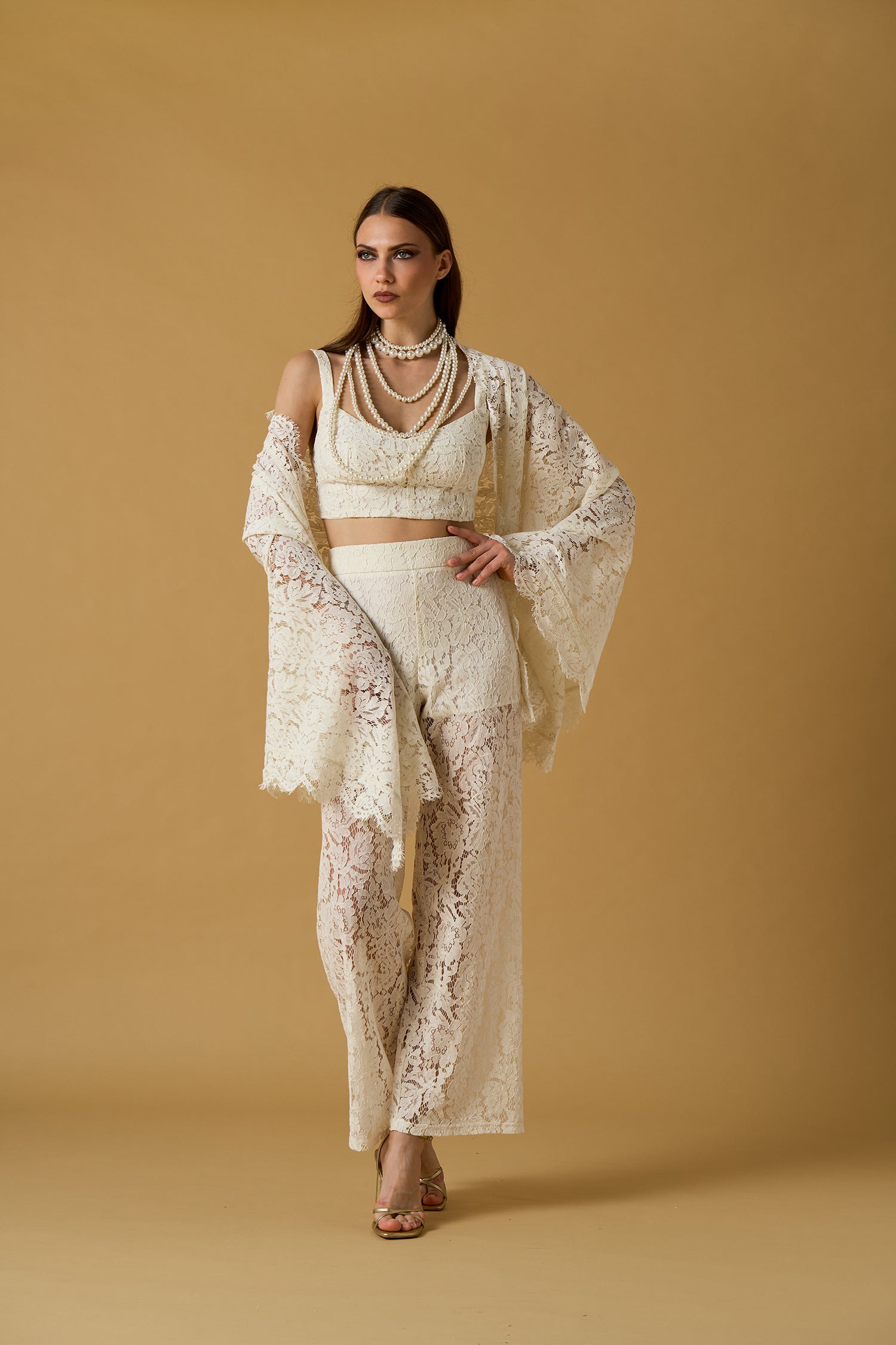 Calças semitransparentes com cintura subida que realça a silhueta. O elástico na cintura garante conforto e ajuste seguro, enquanto o forro interior tipo calções oferece a cobertura necessária. Peça versátil que combina sensualidade com praticidade para o dia a dia.