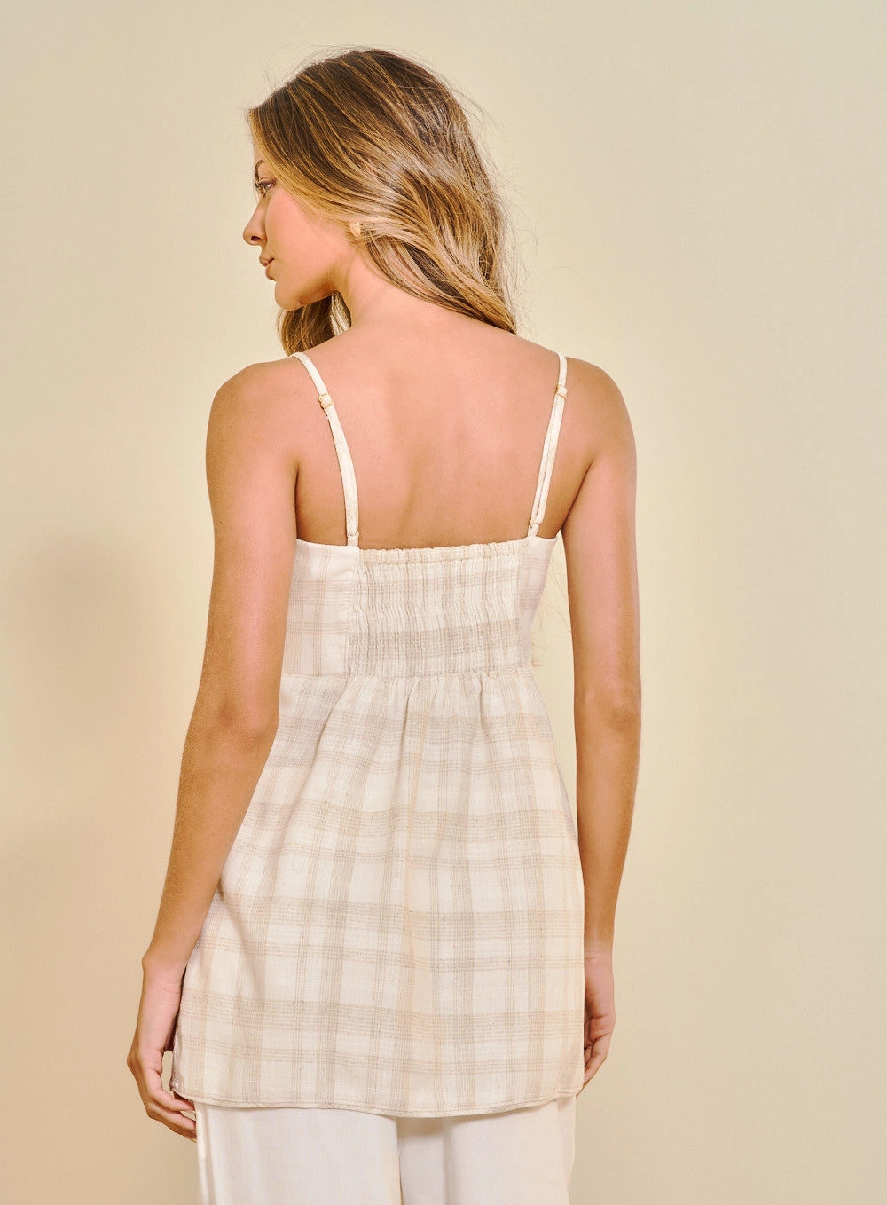 Top com decote em coração que combina sofisticação e conforto. O elegante drapeado no peito é realçado por aplicação em metal piercing, enquanto as alças finas e ajustáveis permitem um encaixe perfeito. As costas em lastex com smocking garantem um ajuste perfeito em qualquer movimento. A abertura frontal flui graciosamente, adicionando charme e versatilidade ao design.