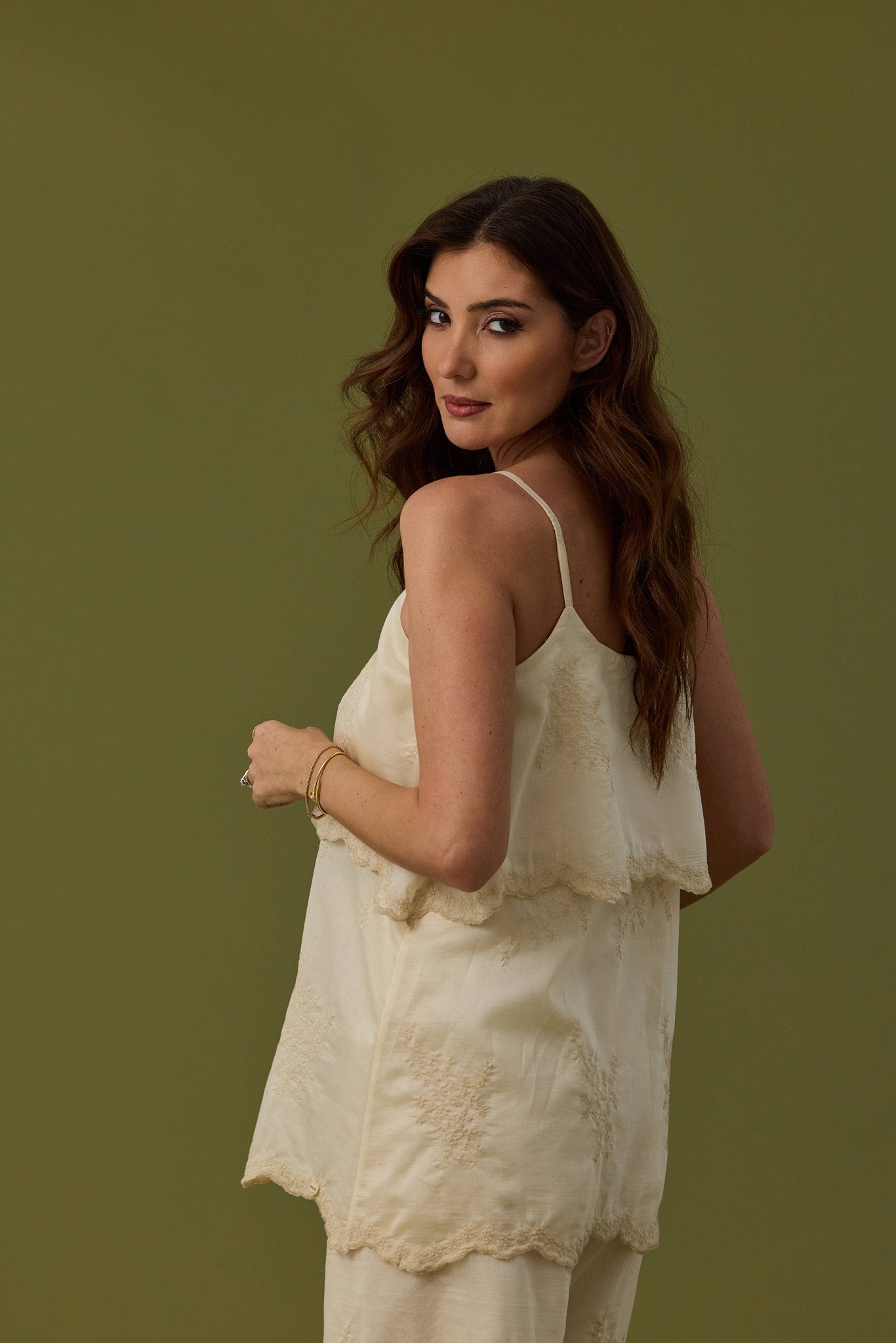 Top renda com alças delicadas que realçam o decote. Apresenta bordado sofisticado com fecho de botões, combinando sensualidade e funcionalidade. Perfeito para ocasiões especiais ou para criar looks refinados no dia a dia. A renda oferece transparência controlada, enquanto os botões frontais permitem ajuste personalizado. Uma peça versátil que transita facilmente entre diferentes estilos e ocasiões.