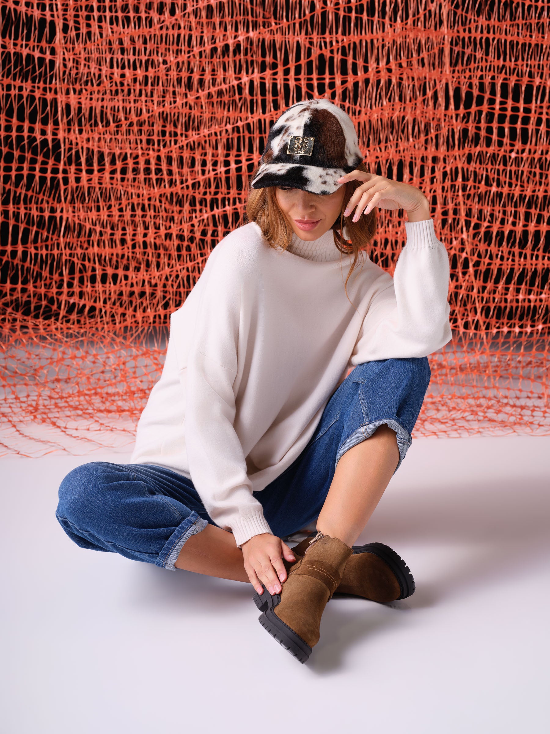 Boné com viseira estampada confecionado em fio de algodão 100%. Ajuste na parte posterior.