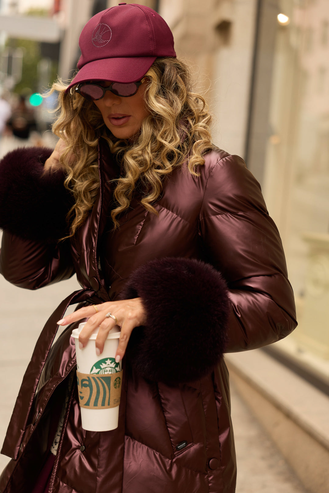 Boné com viseira. Detalhe de bordado com strass em contraste. Ajuste na parte posterior.