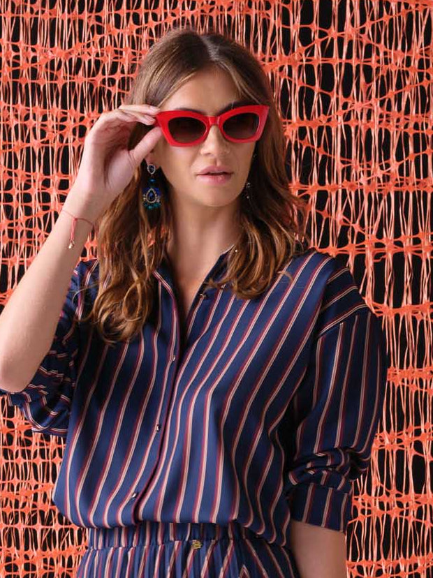 Camiseiro de gola com lapela e manga comprida. Manga comprida. Fecho de botões de mola à frente.