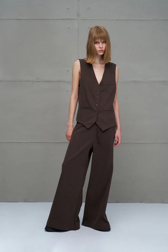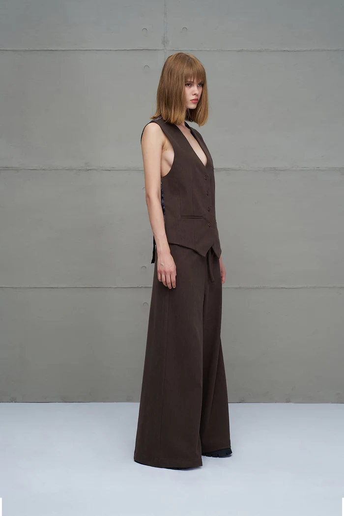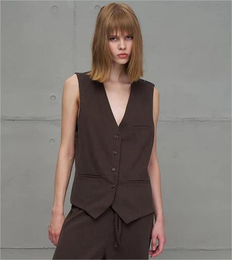 Colete com estampa floral nas costas e com presilha de ajustamento. Bolsos frontais embutidos decorativos. Forro interior. Fecho frontal mediante botões.