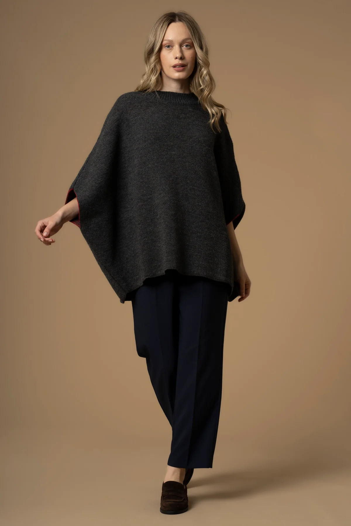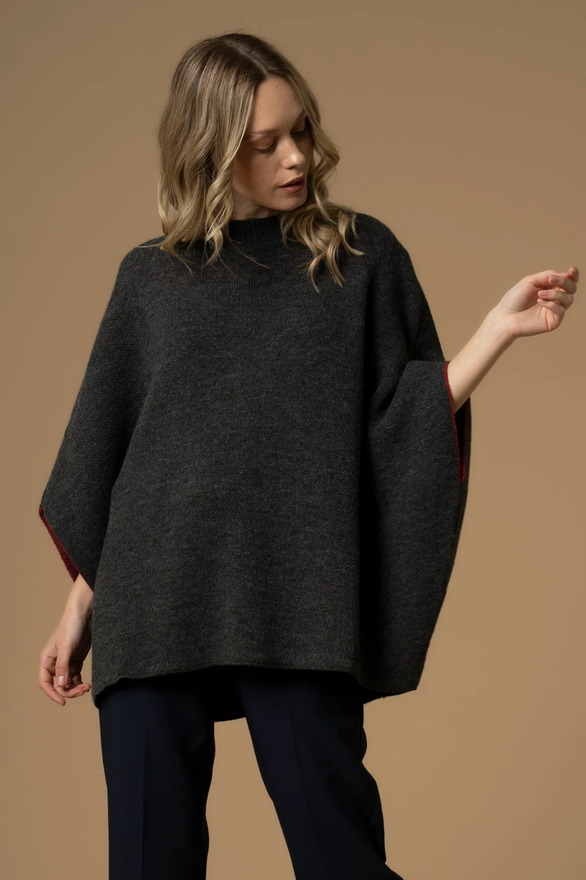 Capa de malha com decote redondo e manga curta estilo capa. Detalhe nas costas com estampa lettering.