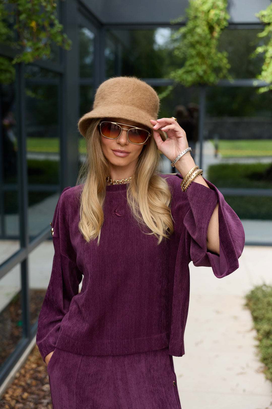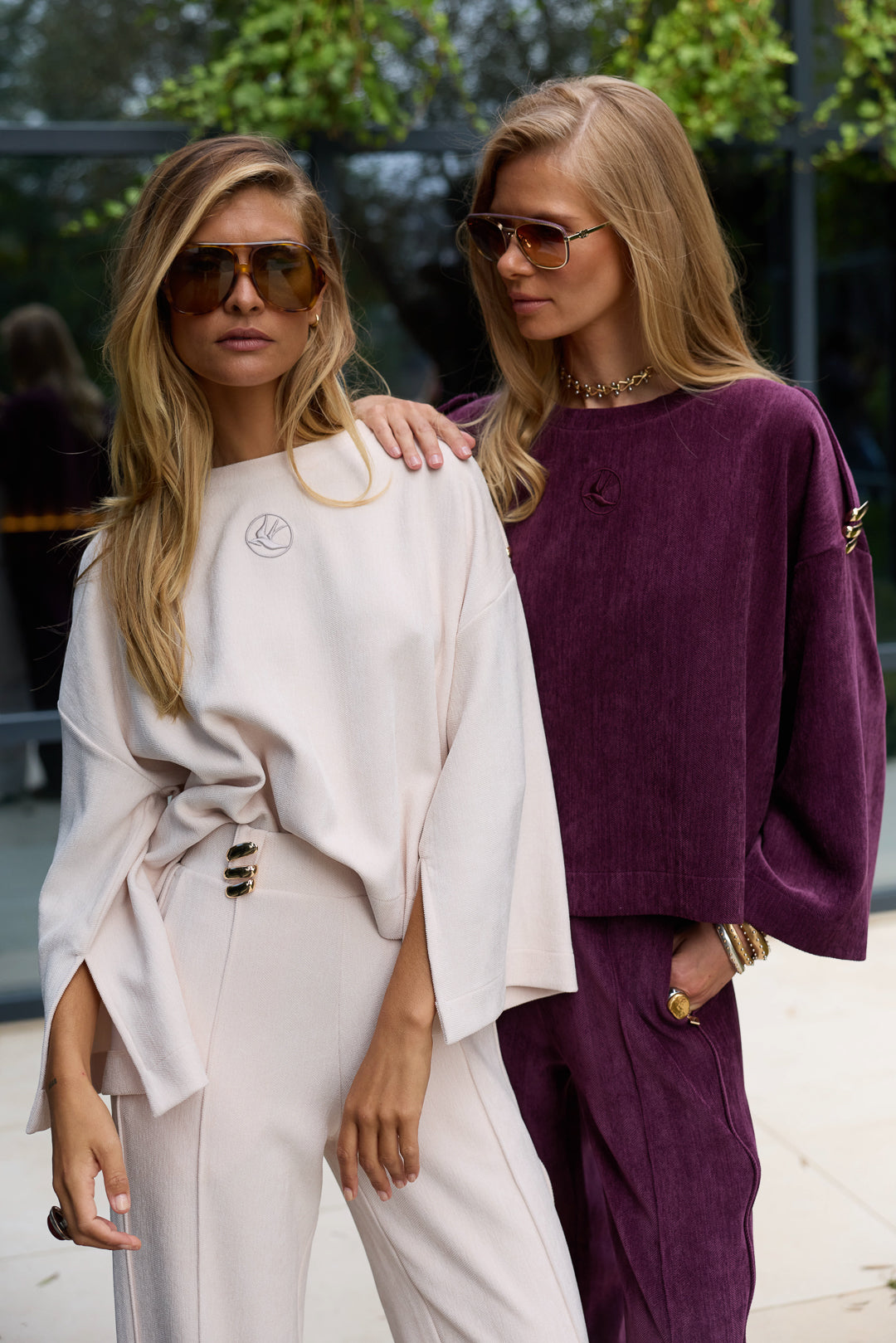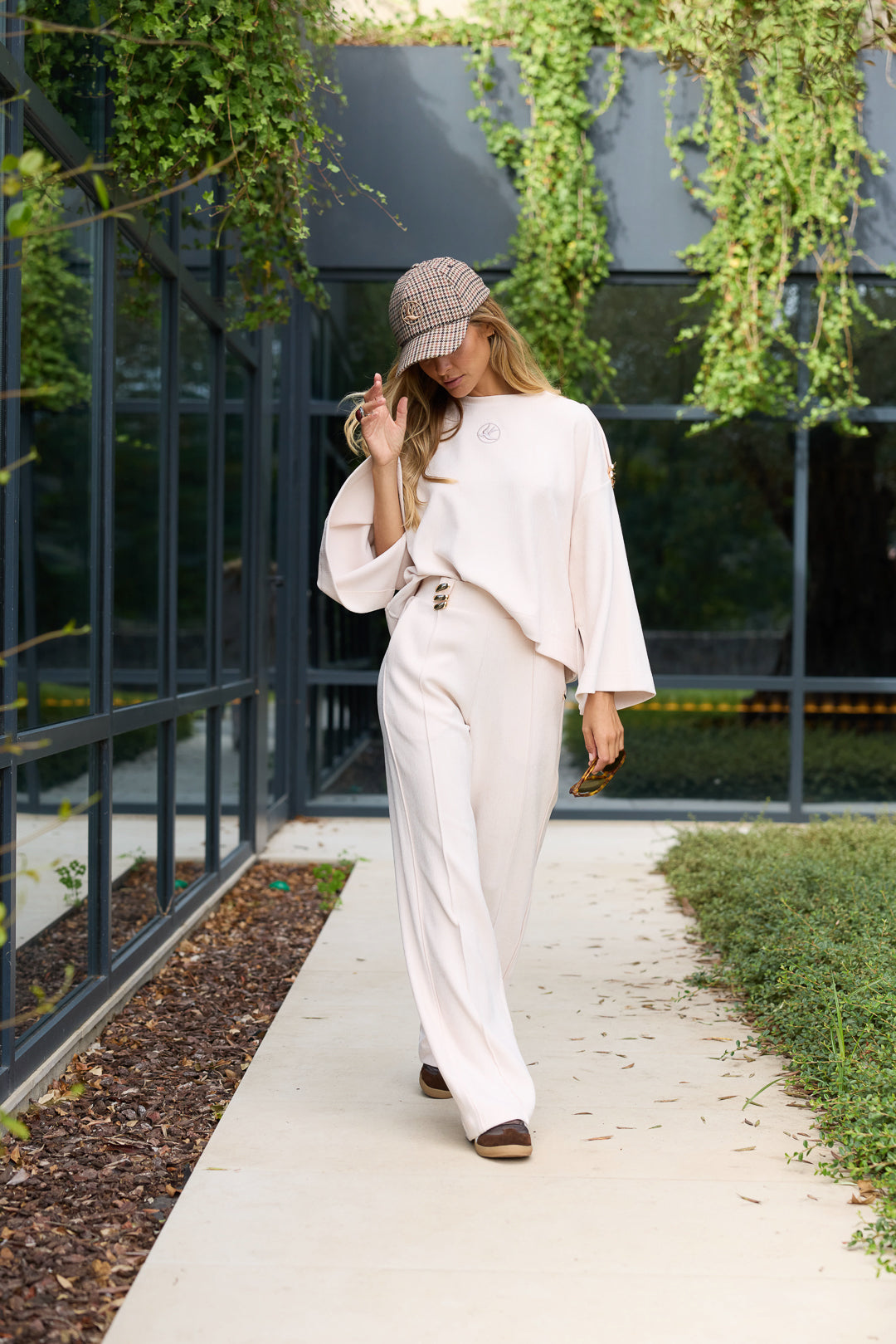 Sweat de gola redonda.Manga comprida com abertura. Detalhe de aplicação na presilha em metal.