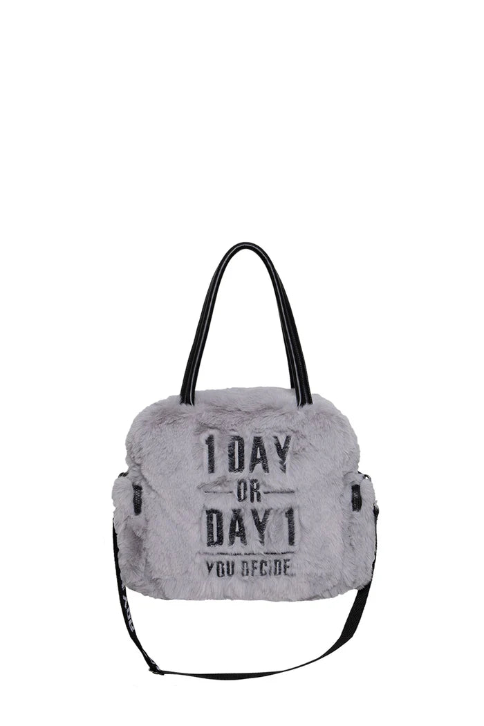 Mala de mão alça dulpa. Alça removível de tecido em posição de tiracolo. Bolsos laterais com fecho de correr. Detalhe de lettering bordado na parte frontal. Fecho mediante fecho de correr.