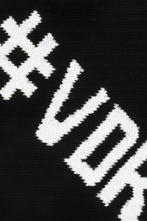 Meias com estampa em lettering da marca em contraste. Detalhe de tecido com nervuras.