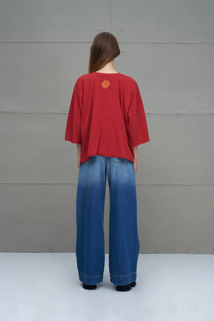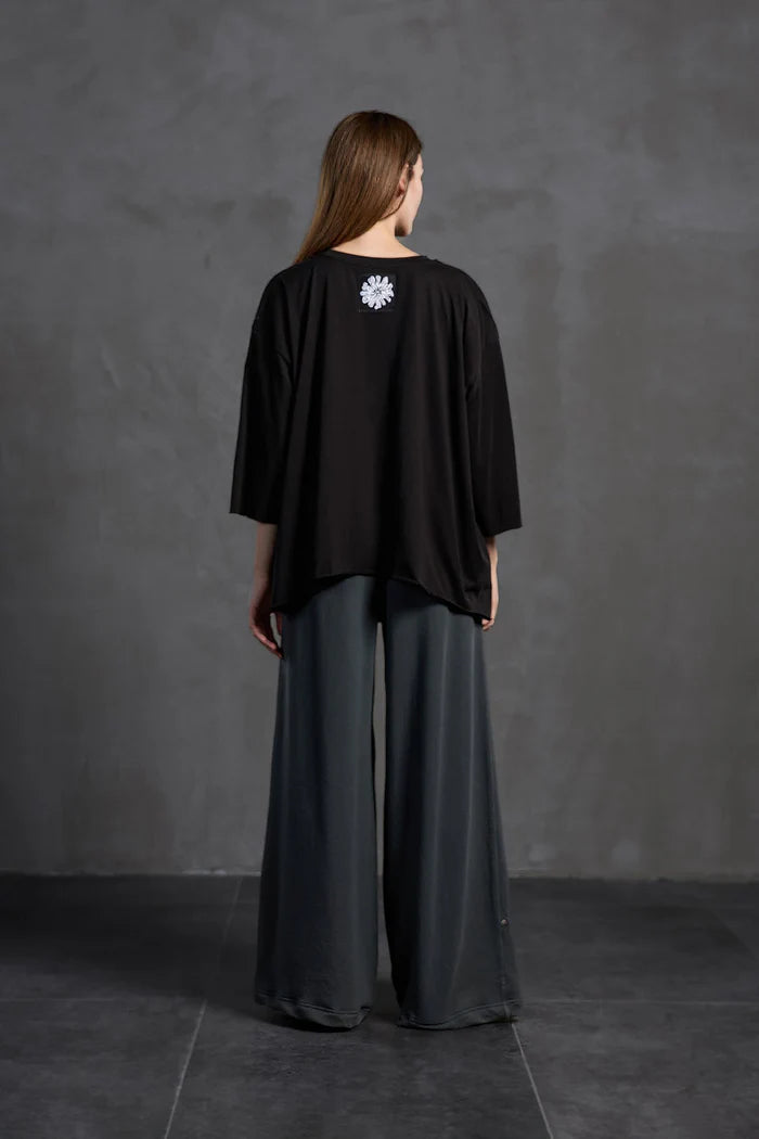 T-Shirt com decote redondo e manga curta. Detalhe de estampa frontal com texto Be Free Let`s Get.
