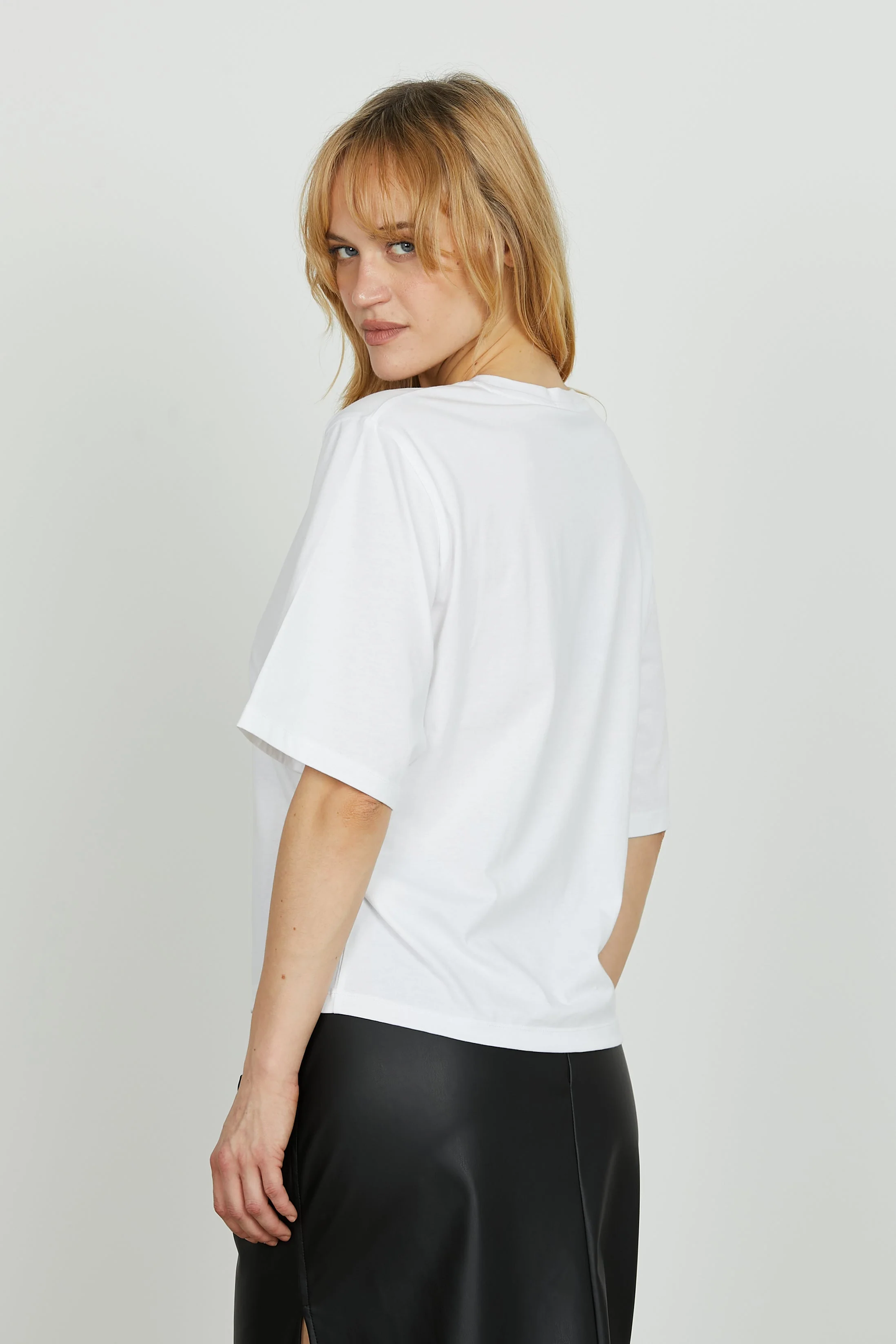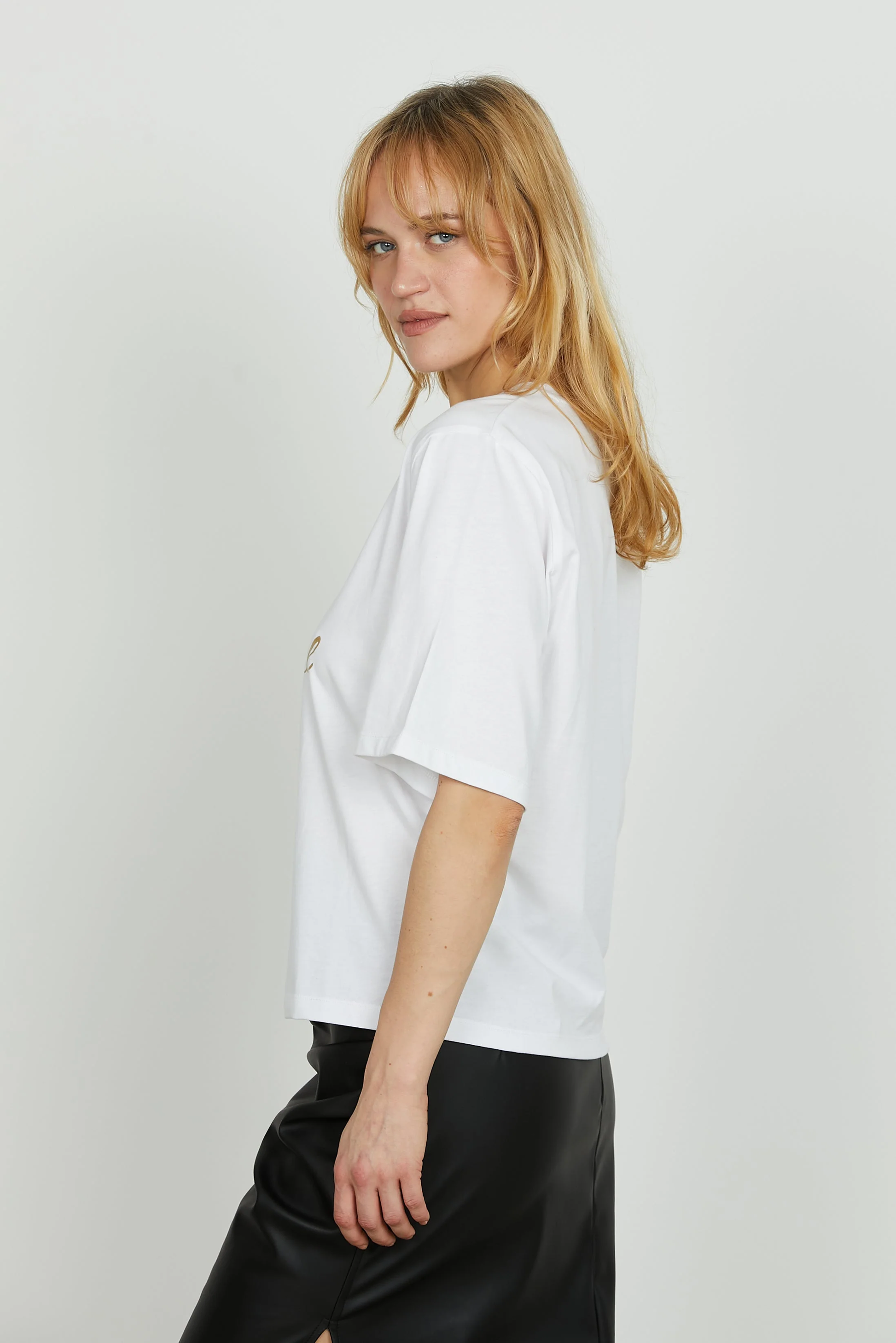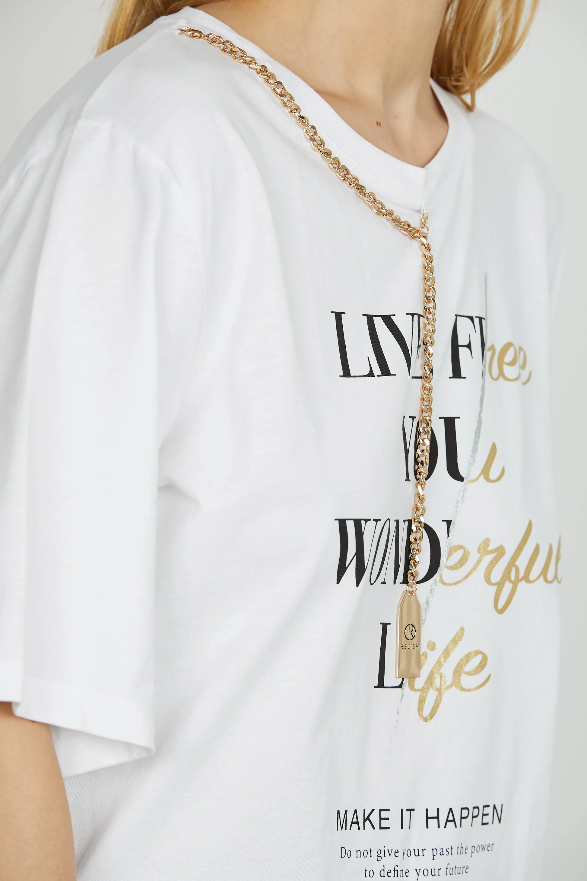 T-Shirt de gola redondo e manga curta. Pendente amovivel.