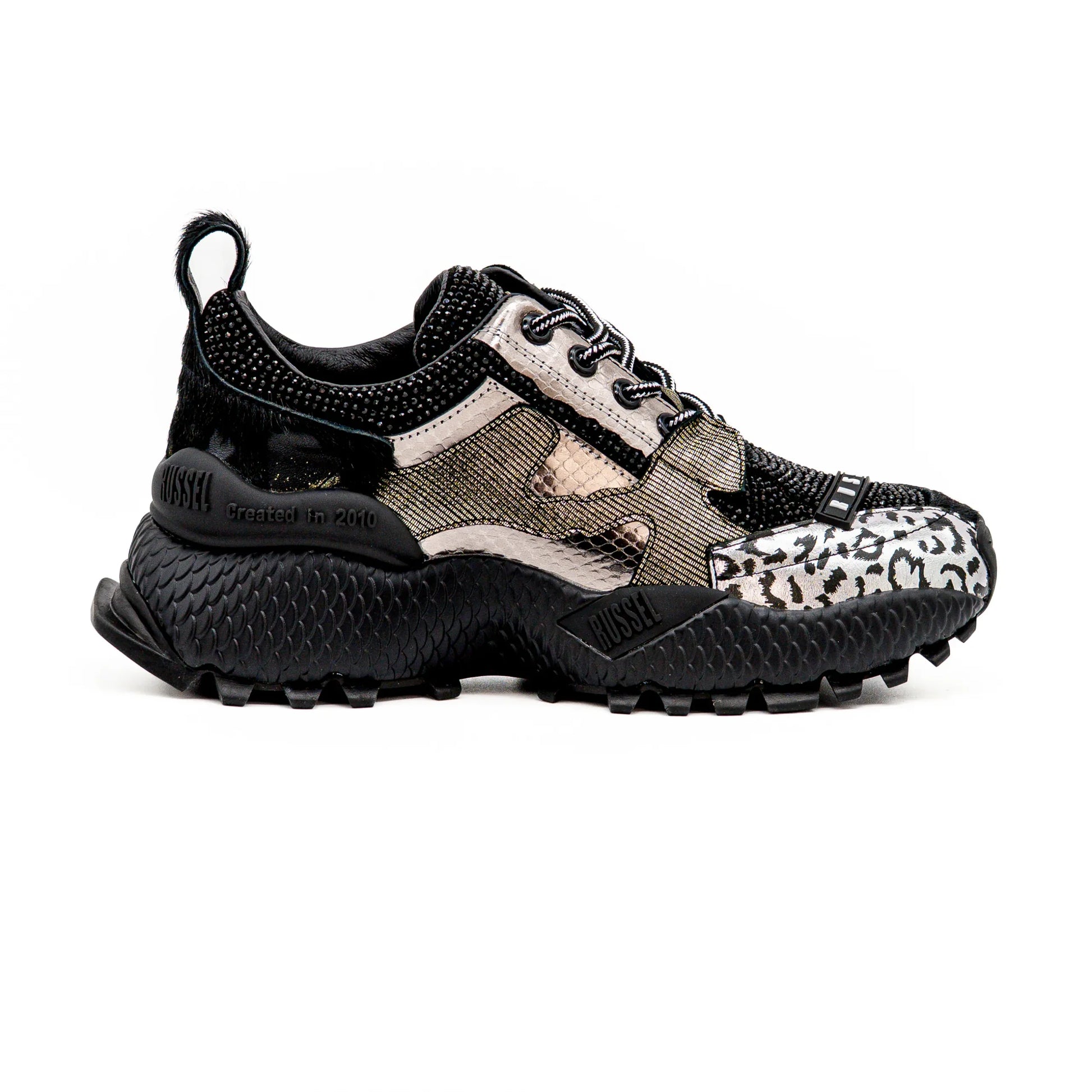 Ténis com detalhe que juntam vários contrastes de texturas e pormenores de cores neutras. Biqueira arredondada. Reforço rígido no calcanhar. Fecho com cordões. Altura da sola: 4 cm.