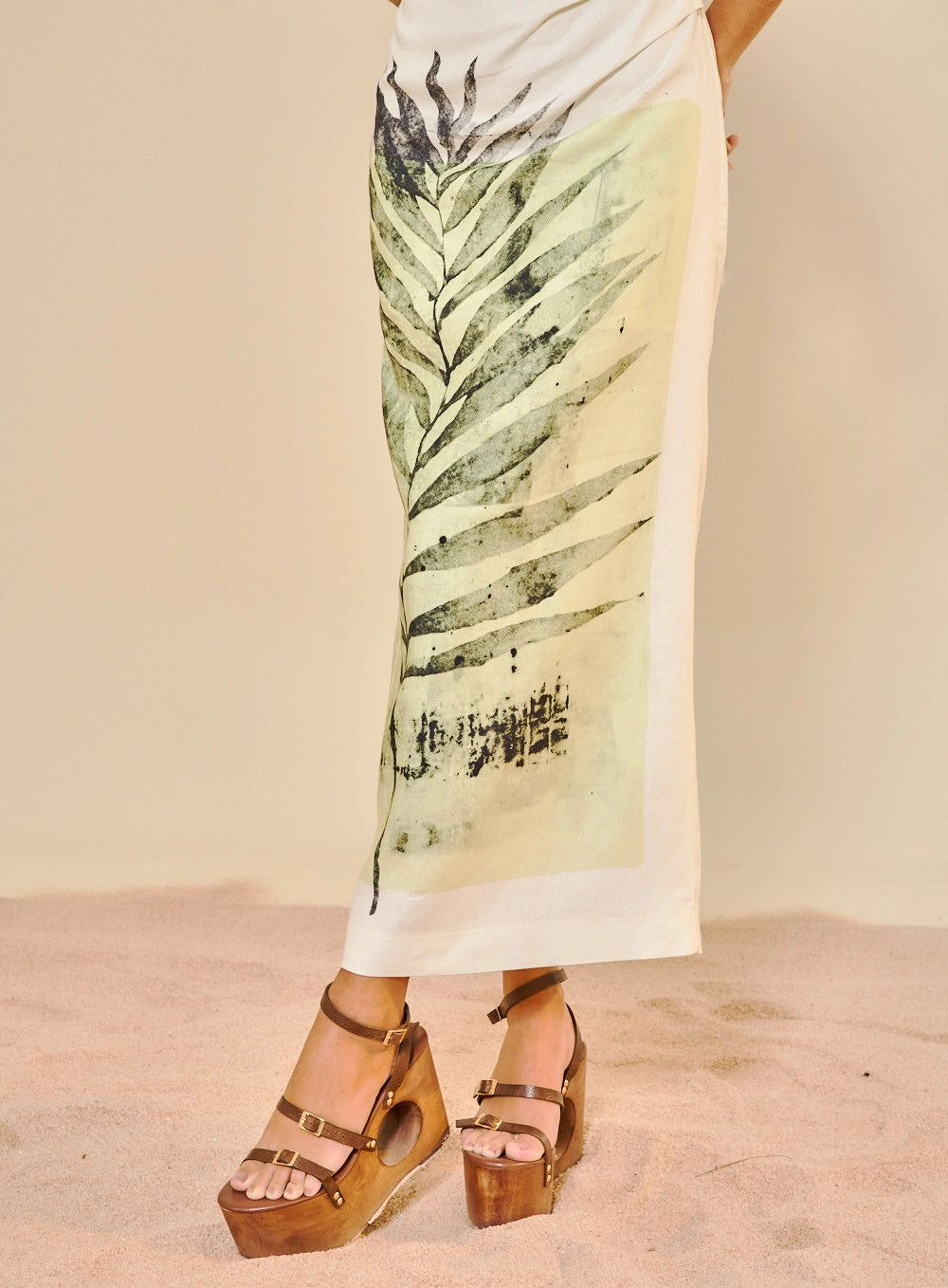 Vestido midi elegante com estampa frontal em destaque e decote halter. Costas ajustáveis através de atilhos que permitem personalizar o ajuste conforme desejado. Fecho nas costas com fecho de correr oculto na costura. Peça versátil ideal para ocasiões casuais ou mais sofisticadas, combinando conforto e estilo numa silhueta moderna e feminina.